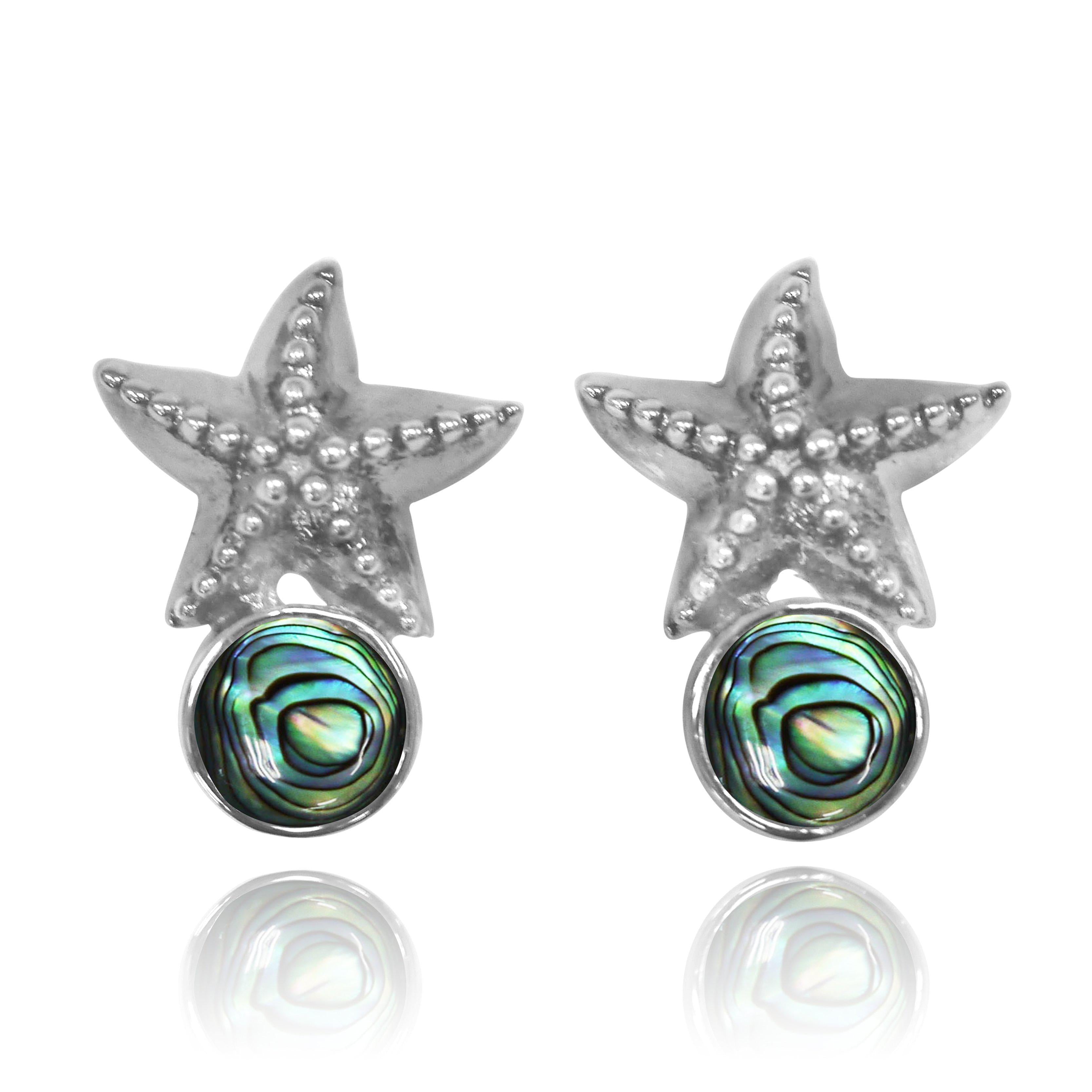 These beautiful earrings are 925 Sterling Silver and are plated with Rhodium to protect the finish from scratches and tarnishing. The design is enhanced by Abalone gemstones.