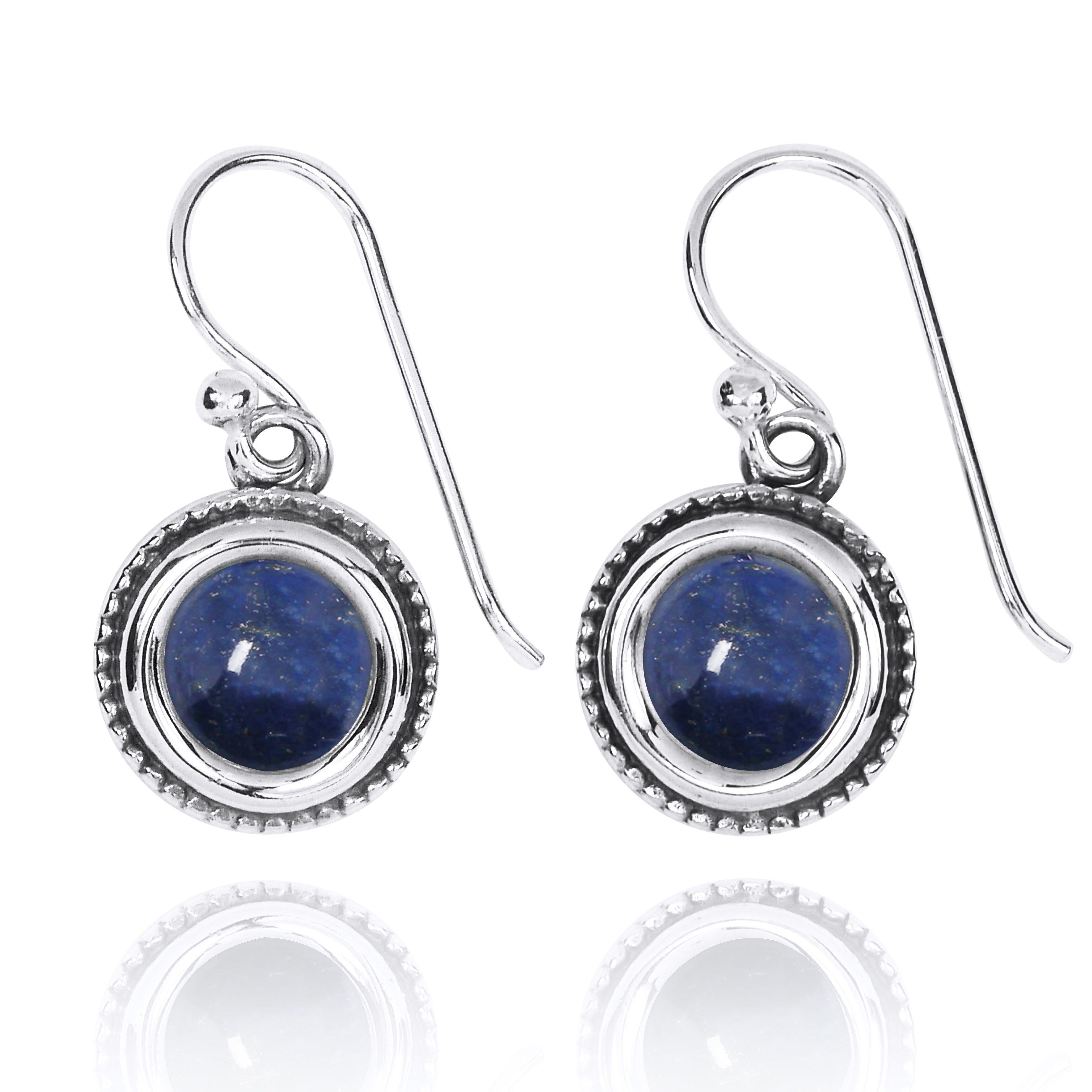 These beautiful earrings are made of 925 Sterling Silver and plated with Rhodium to protect the finish from scratches and tarnishing. Each earring has a semi-precious  Lapis stone. Only the highest-quality stones are set in our earrings.