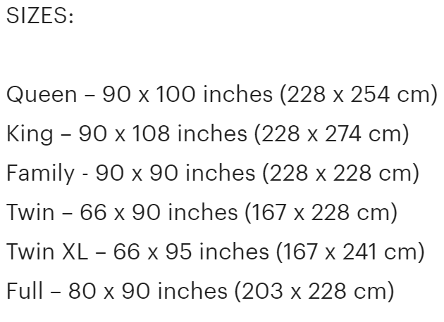 Twin XL – 66 x 95 inches (167 x 241 cm)