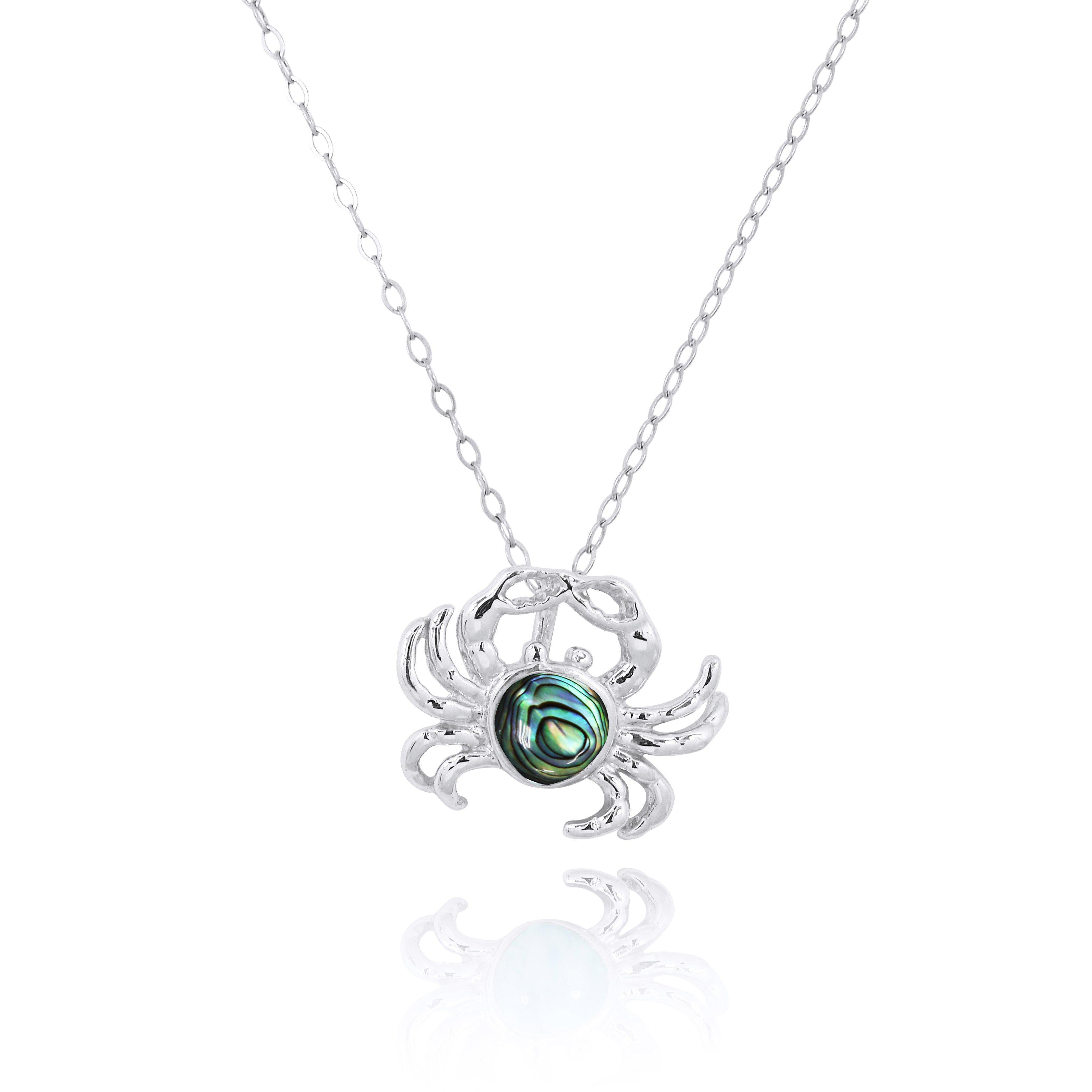 Sterling Silver Crab Pendant Necklace with Abalone Shell