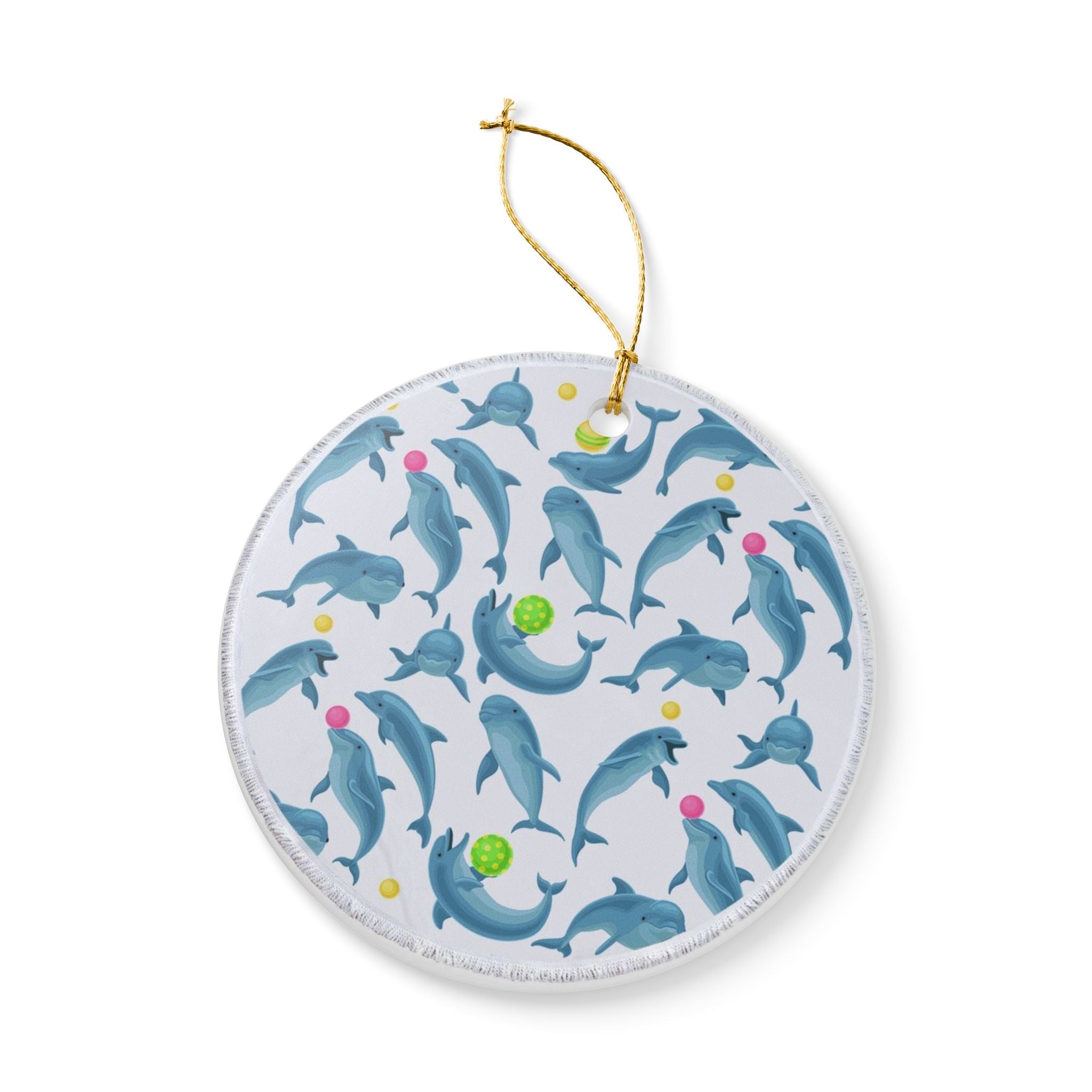 Dancing Dolphins Ceramic Ornament - Coastal Decoration