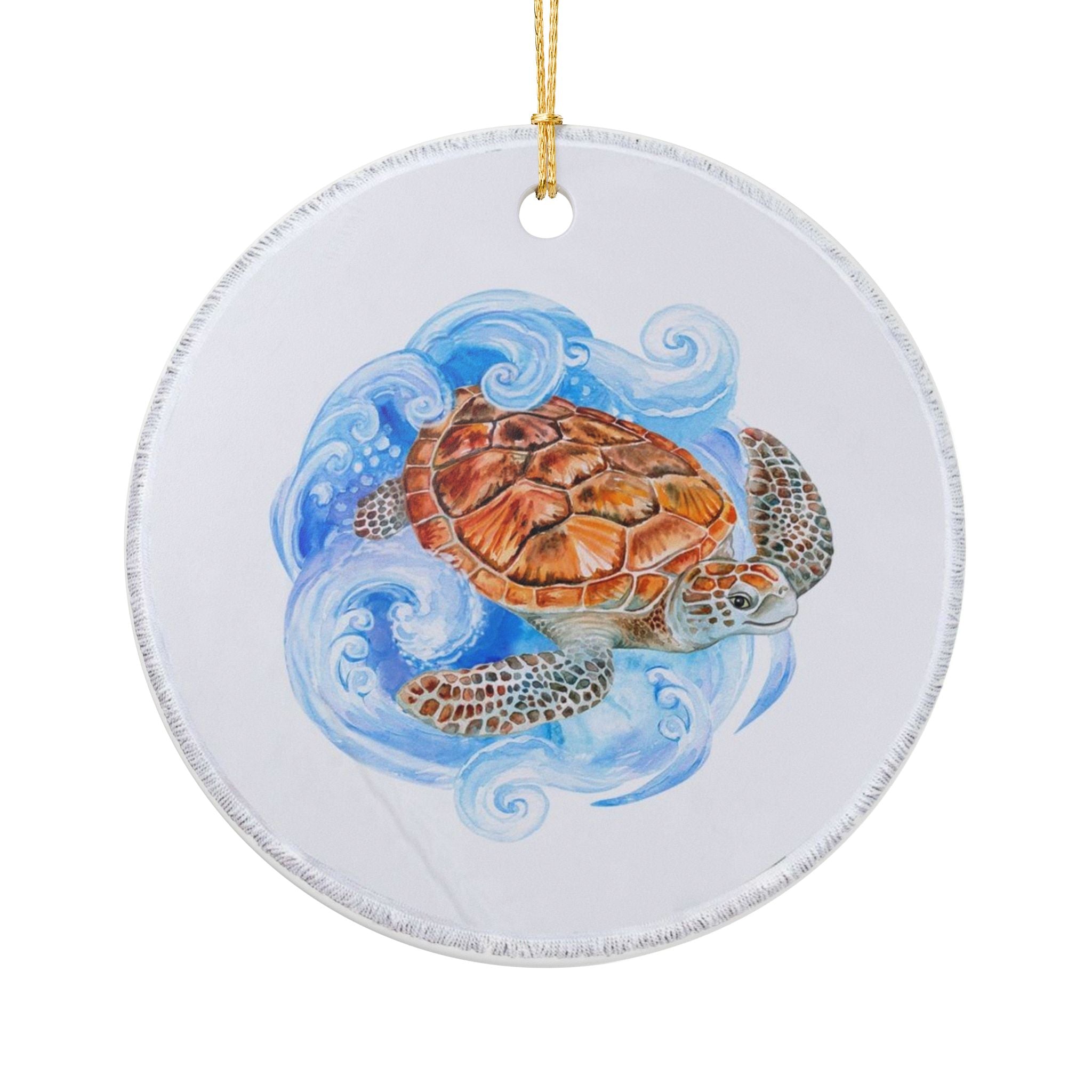 Sea Turtle's Dance Ceramic Ornament - Coastal Decoration