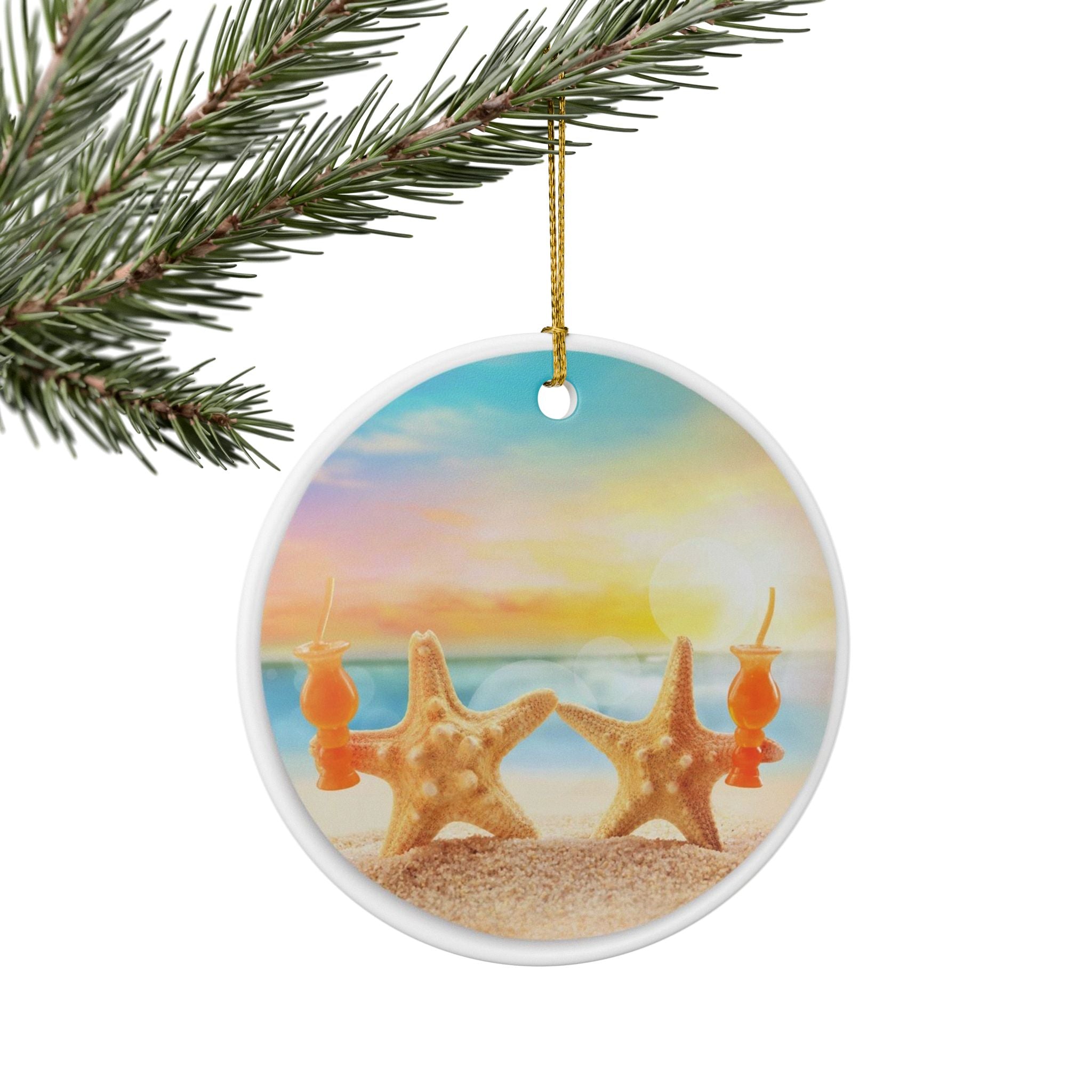 Starfish Sunset Serenade Ceramic Ornament - Coastal Holiday Decoration