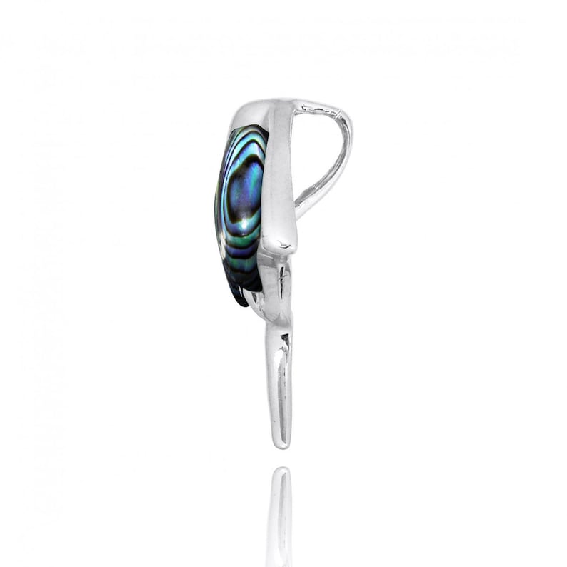 This beautiful pendant is 925 Sterling Silver and is plated with Rhodium to protect the finish from scratches and tarnishing. The design is enhanced by Abalone gemstones.