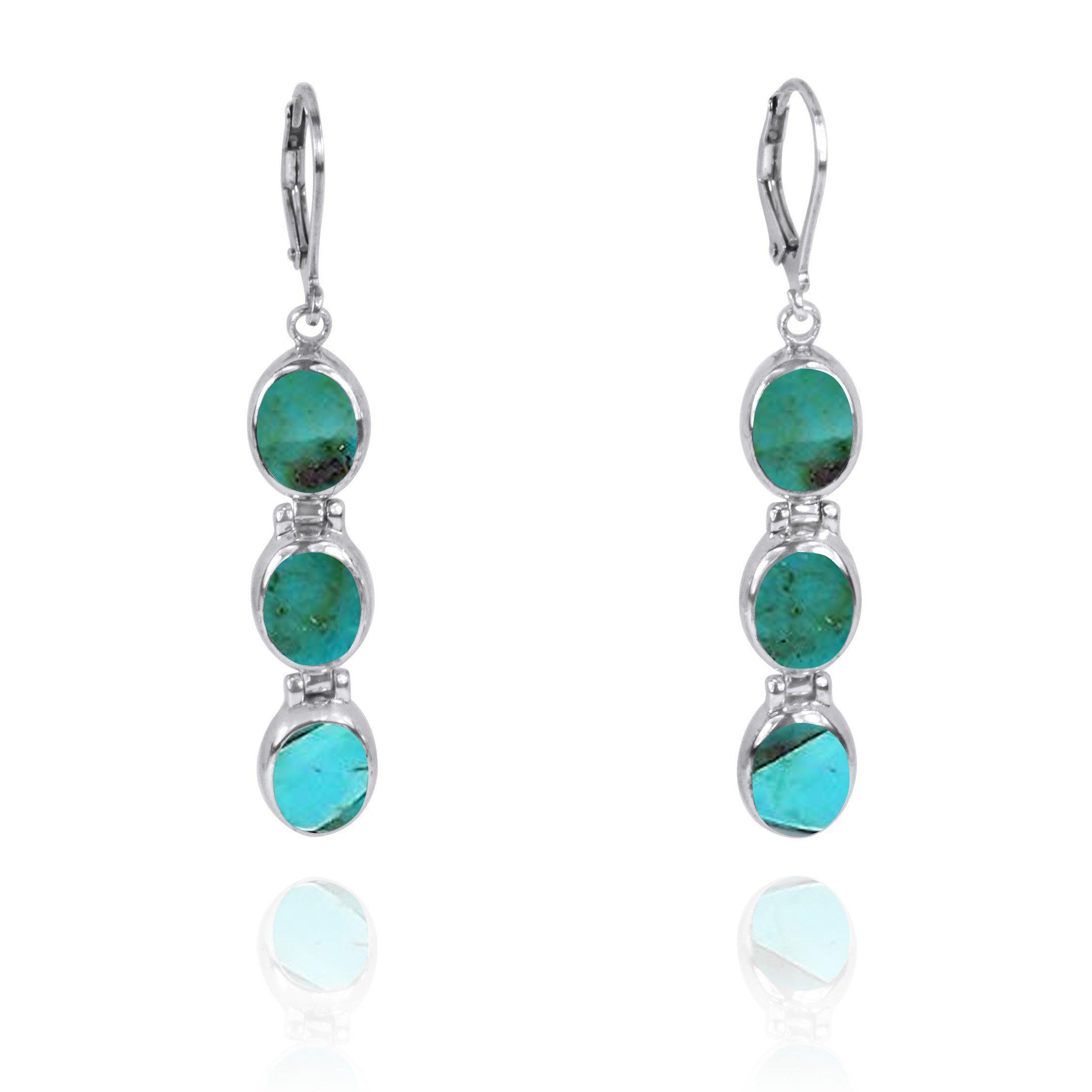 Triple Oval Turquoise comp Sterling Silver Lever Back Earrings