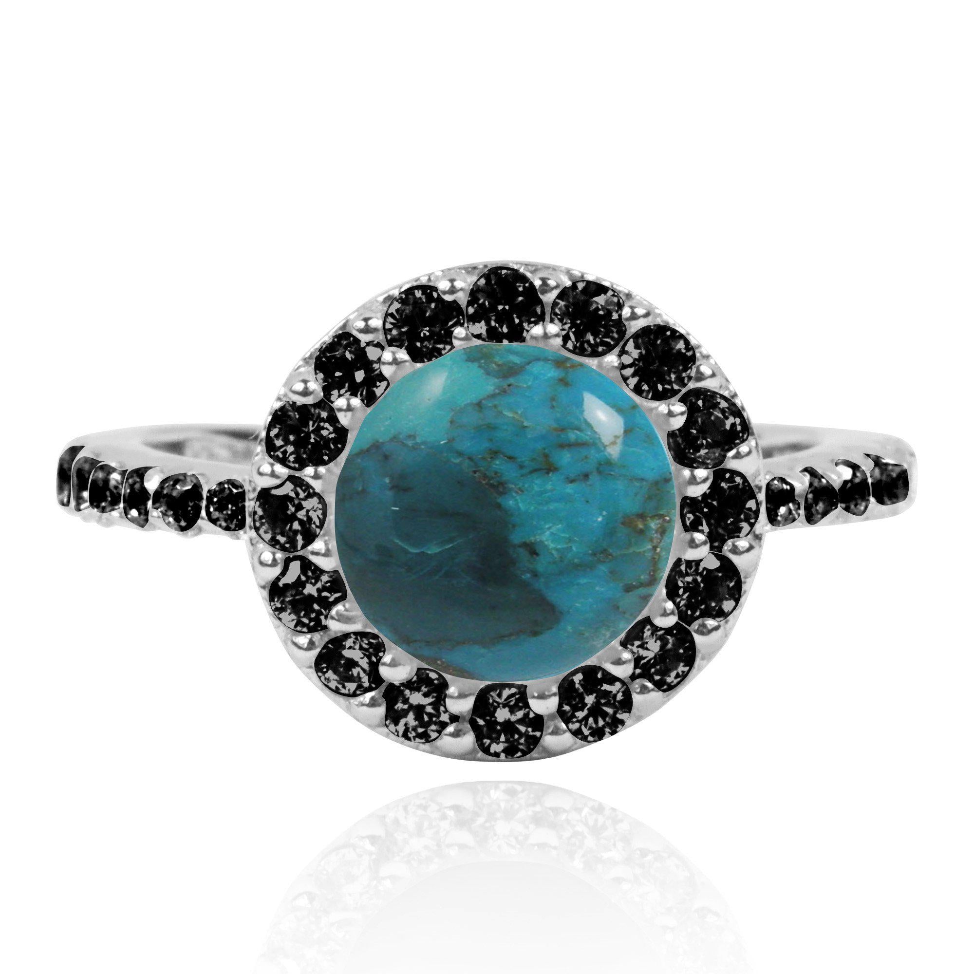 This exquisite ring is made of 925 Sterling Silver and plated with Rhodium to protect the finish from scratches and tarnishing. The ring is embellished by a genuine  Turquoise stone. Only the highest-quality stones are set in our rings.