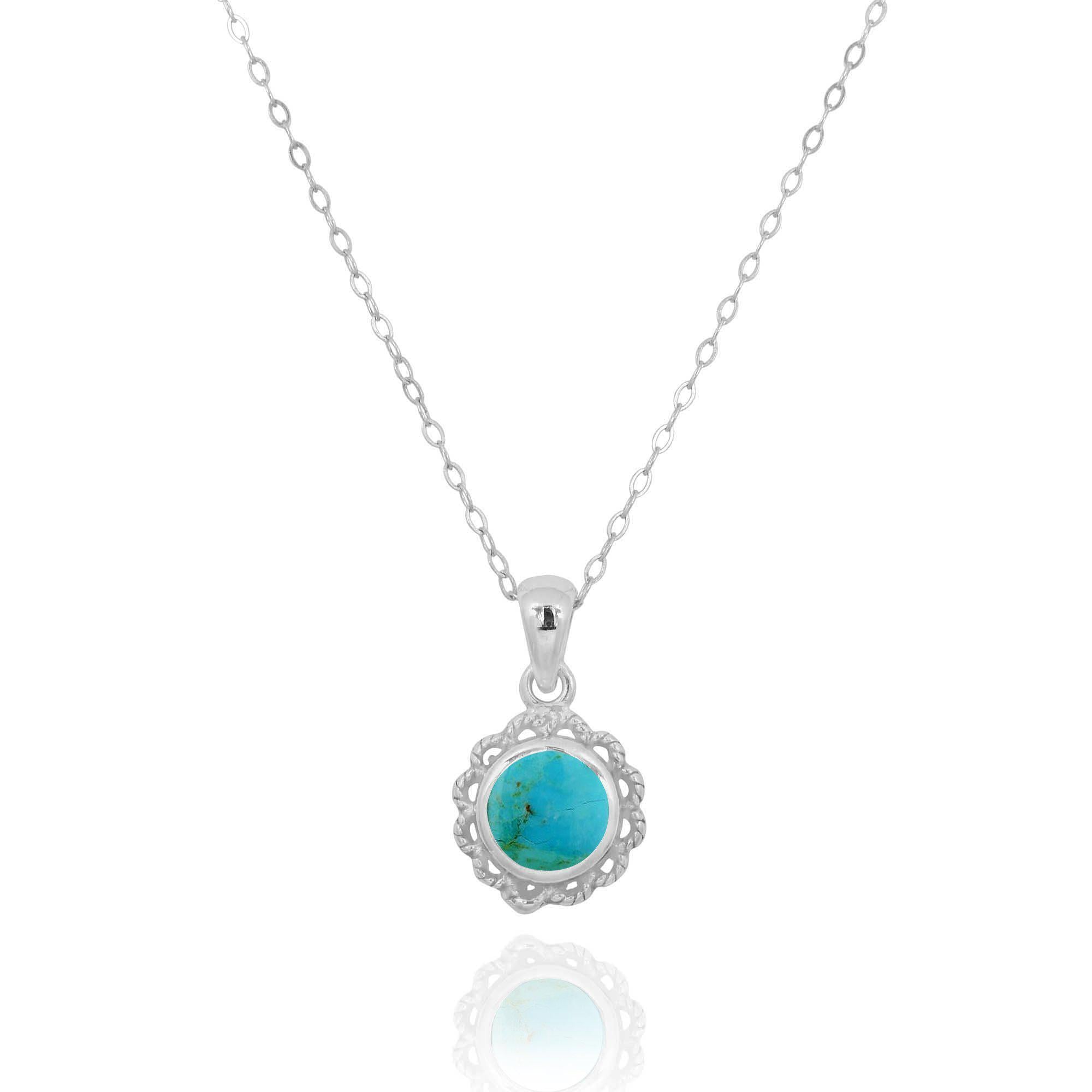 This gorgeous pendant necklace is made of 925 Sterling Silver and plated with Rhodium to protect the finish from scratches and tarnishing. The pendant is embellished by a genuine  Turquoise stone. Only the highest-quality stones are set in our pendants.